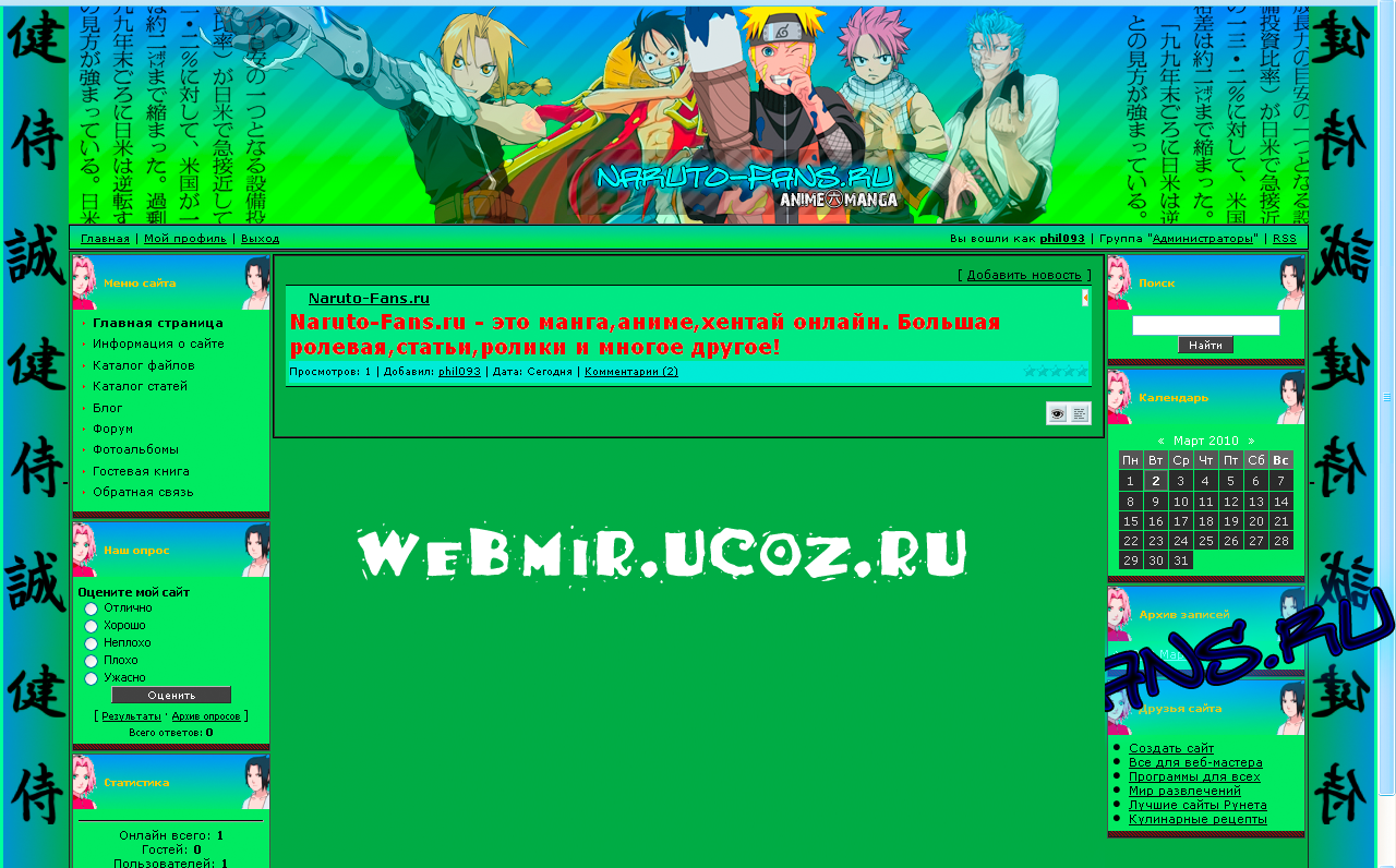 Шаблон Аниме для uCoz + psd